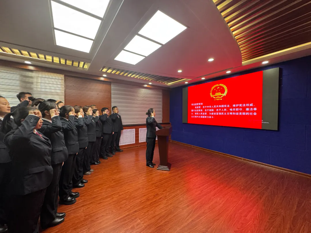国歌奏唱完毕后,在院党组书记、检察长赵慧静的领誓下,全体检察人员面向国徽,右手举拳,庄严宣誓:“我宣誓:忠于中华人民共和国宪法,维护宪法权威,履行法定职责,忠于祖国、忠于人民,恪尽职守、廉洁奉公,接受人民监督,为建设富强民主文明和谐美丽的社会主义现代化强国努力奋斗!”铿锵有力的誓言回荡在活动现场,既是对宪法的庄严承诺,也是对检察使命的深刻诠释。