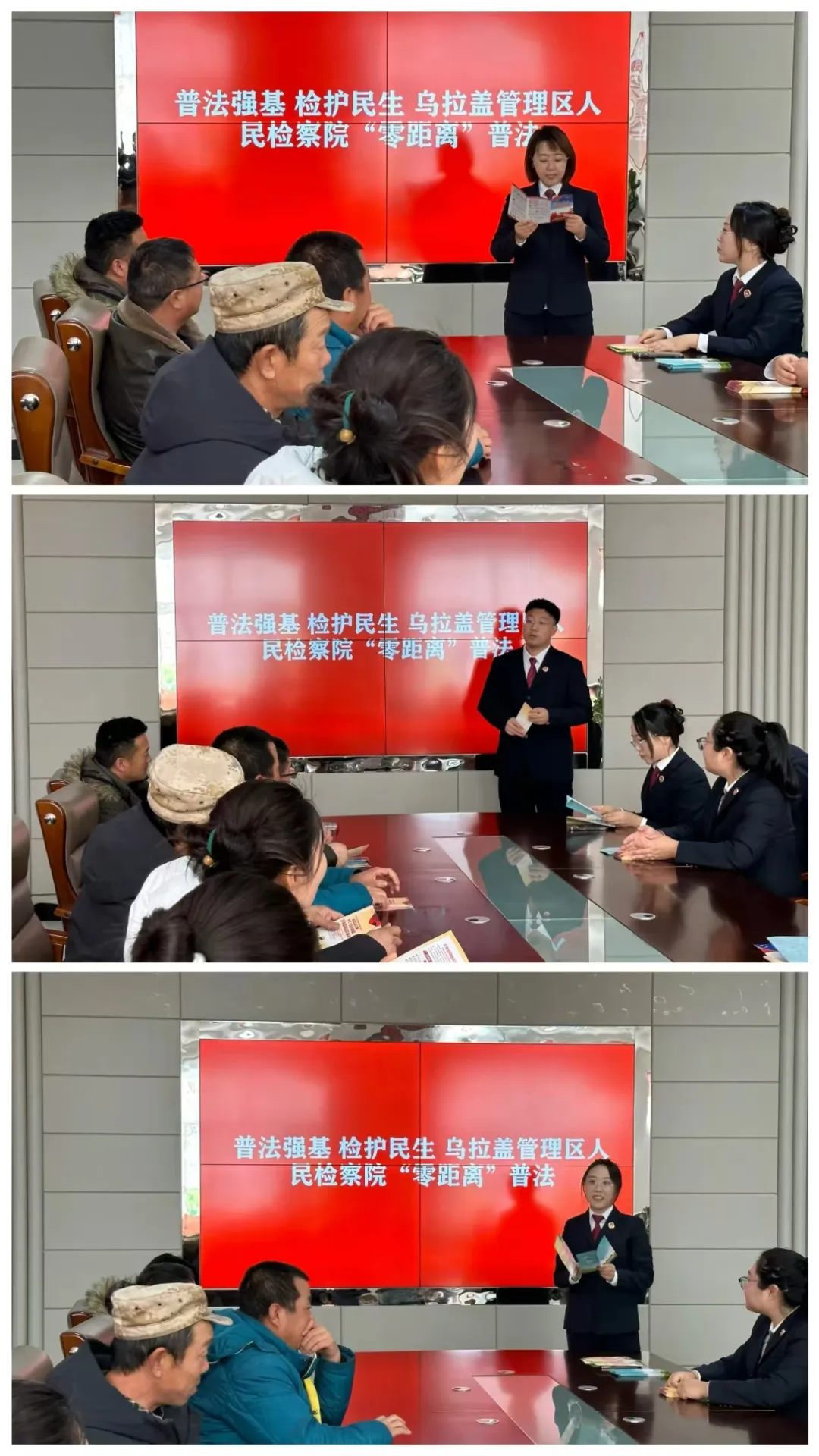 (四)融入到法治建设大局中。切实履行法律监督职能,增强监督的主动性,创新监督的方式,提高监督的精准度,不断提升监督质效。同时,建立“检察蓝” “乌兰牧骑红”协作机制, 将法治宣传内容有机融入乌兰牧骑节目创作中,联合开展普法宣传活动,结合“线上+线下”扎实开展普法宣传“六进”活动, 制作的普法小视频和普法漫画线上阅读量累计超5000余人,收到良好的社会效果,有效提升了人民群众的法治意识。